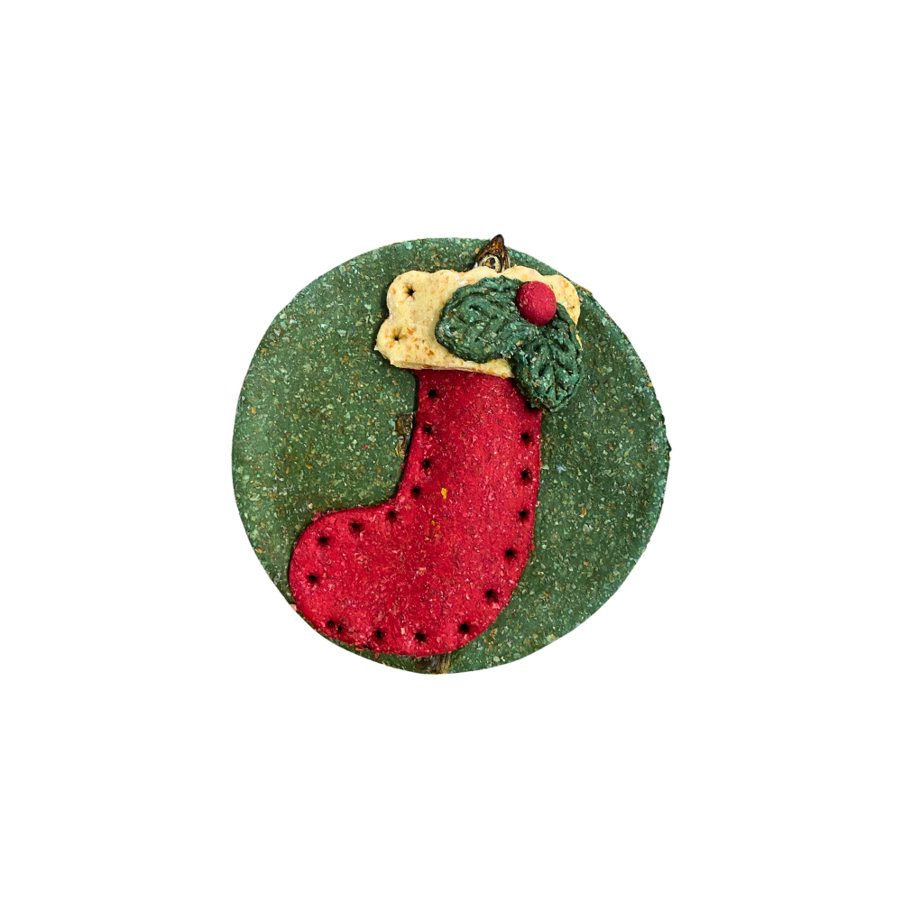 Árbol de navidad: Harina de trigo integral, espirulina, caballa y aceite de salmón salvaje, bolas y estrella de cúrcuma y remolacha.